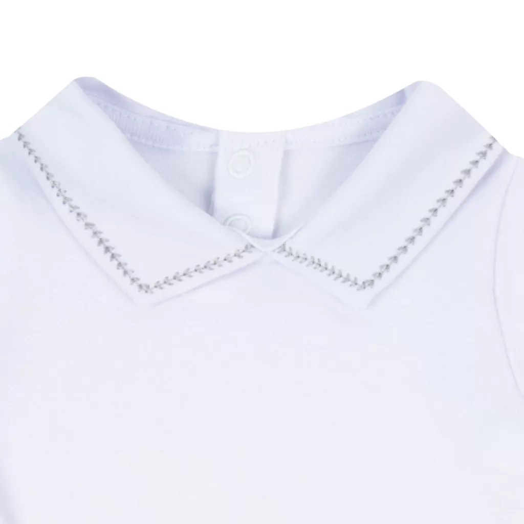 Body Bebê Branco Liso Longo com Gola Bordada em Cinza - Hug