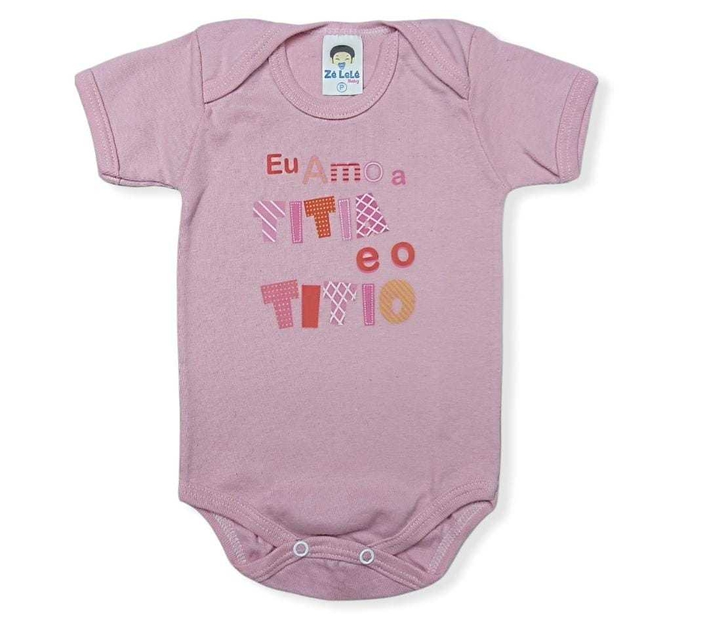 Body manga curta feminino para bebê sublimado " Eu amo a Titia e o Titio "