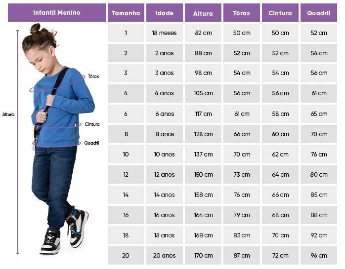 Tamanho 14: Largura: 45cm / Altura: 61cm