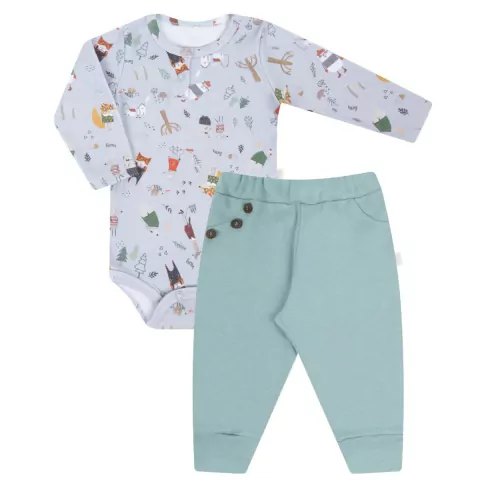 Conjunto Body Longo + Calça Culote Escandinavo - Hug: Estilo para seu bebê, com conforto e toque de maciez exclusivo Hug. Item indispensável no guarda - roupas.