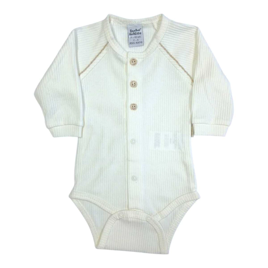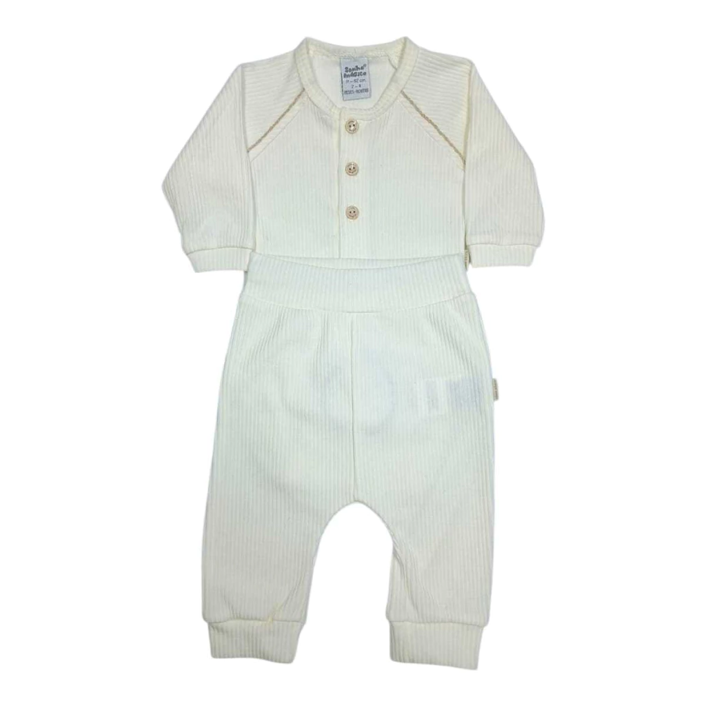 Conjunto Bebê Body longo canelado + calça canelada 2Pçs Bege - Sonho Mágico: Charme e Conforto para seu bebê