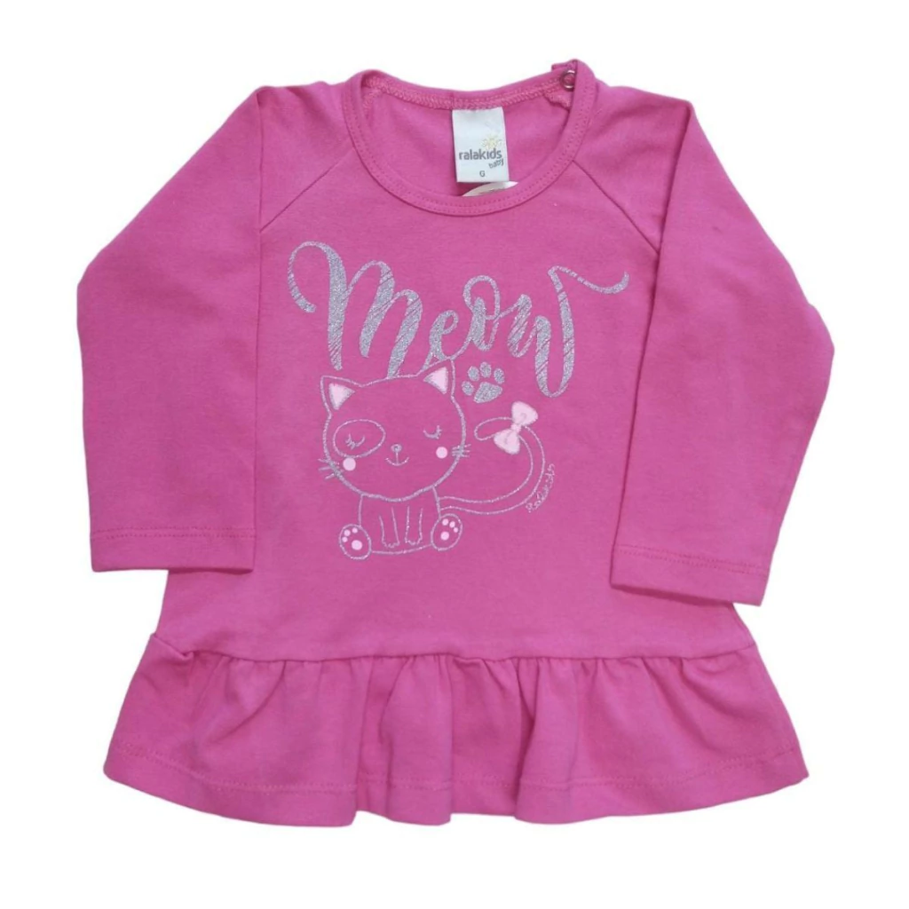 Blusa em malha com estampa frontal manga longa e babado na parte inferior, botão de pressão na gola para facilitar no momento de vestir o bebê. Em malha 96% algodão e 4% elastano.