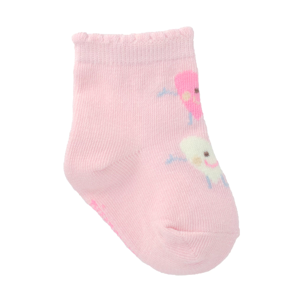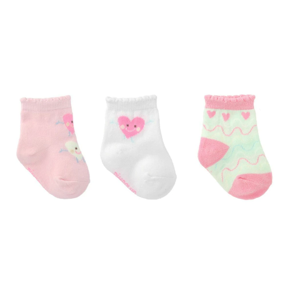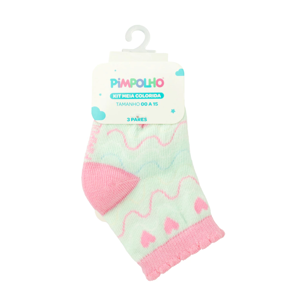 1 kit de 3 pares de meias sendo: 1 verde ondas / 1 Branco coração / 1 Rosa Coração